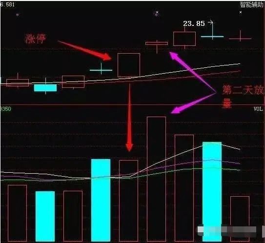 2、收出涨停板的第二天,量能越大的个股越好,只要第二天股价没有收出大阴线,则量能越大表明主力越强势。